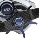 A thick, custom-designed ultralight one-piece 95-mm carbon fiber handle provides extreme strength and maintains rigidity in the heaviest cranking conditions. Its sleek, swept design places the soft-touch paddle grips closer to the reel’s center line, resulting in zero felt side torque under load.