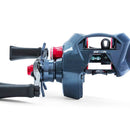 A thick, custom-designed ultra-light one-piece 95-mm carbon-fiber handle provides extreme strength and maintains rigidity in the heaviest cranking conditions. Its sleek, swept design places the soft-touch paddle grips closer to the reel’s center line, resulting in zero felt side torque under load.